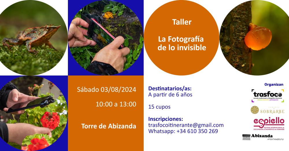 Taller & Exposición de lo invisible Whatsapp: Taller & Exposición de lo invisible Fecha 25 julio 2024 Taller: La fotografía de lo invisible. Sábado 3 de Agosto 2024 Exposición fotográfico: El bosque invisible. 2 al 16 de Agosto Galería imágenes cat: Ayuntamiento, vaobulcary: 2661222 cat: Eventos y fiestas, vaobulcary: 2661222 cat: Municipio, vaobulcary: 2661222 cat: Última hora, vaobulcary: 2661222